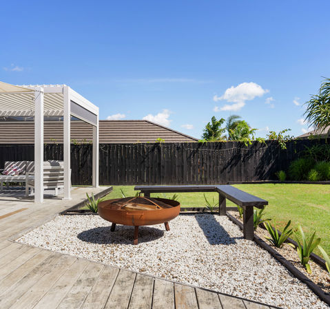 Outside, a tropical oasis awaits. Enjoy expansive decking, ambient lighting and two covered spaces - one perfect for entertaining and the other for relaxing in the spa. It's your own serene escape, crafted for ultimate comfort and pure enjoyment.